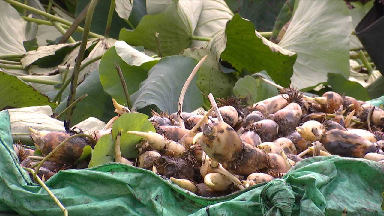 秀洲区王江泾镇莲藕种植户 姚忠保:“这个珍珠藕短短的,圆圆的,像珍珠一样,很漂亮,供不应求。预计现在产量一亩达到1500斤,产量比往年要好一点,经济效益每亩可增收七八百元。”