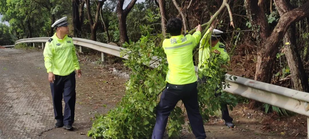 受超强台风“格美”影响,7月24日下午开始,苍南县马站镇内山区道路边树木因大风大雨导致弯折,影响道路行车安全。马站交警中队立即对沿线开展巡逻,对倒伏树木进行修剪、清除,搬移倾倒的路牌,及时排除隐患。