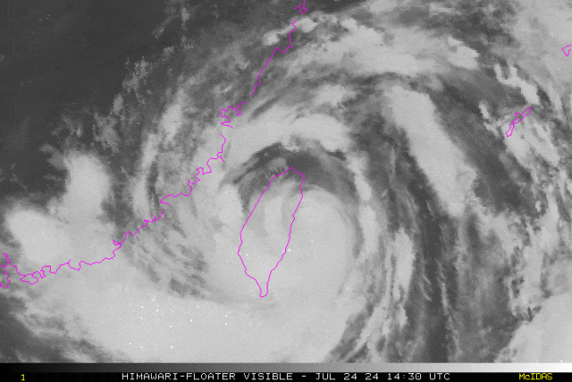 ▲葵花-8号卫星监测到的第3号台风“格美”可见光云图动画(时间段:2024年7月24日22时30分至25日05时30分)