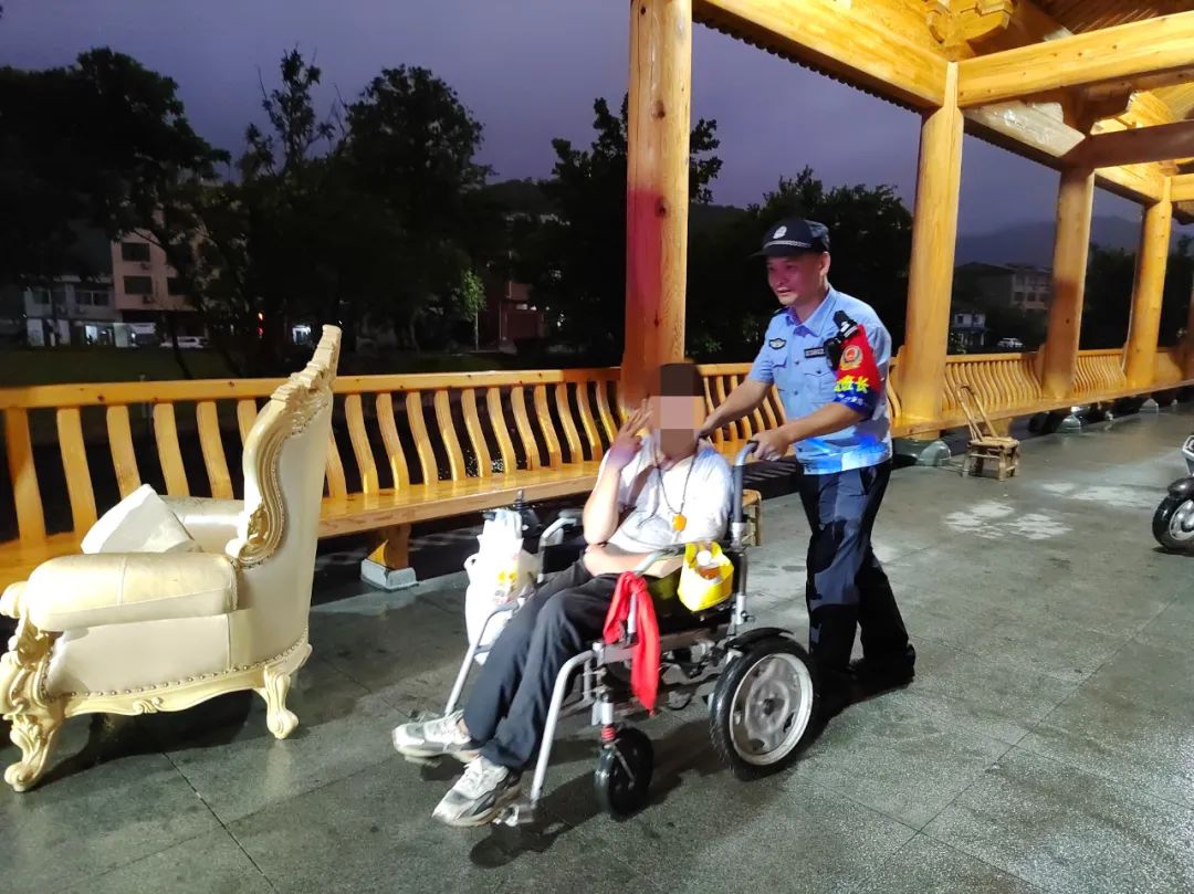 7月24日下午,受超强台风“格美”影响,苍南出现大风大雨天气,38岁的残疾人杨某驾驶电动轮椅从苍南华阳到观美途中遇上大雨,在亭子里躲雨,因其有听力障碍,附近群众担心有危险向苍南公安报警求助。灵溪中心派出所迅速出警赶赴现场,因杨某手机没电,无法联系家人,该所值班长王定彬通过查询系统得知其户籍地为灵溪镇华阳社区,联系其家人末果后,又尝试与其沟通,得知其家庭大概地址后,便开车送其回家。