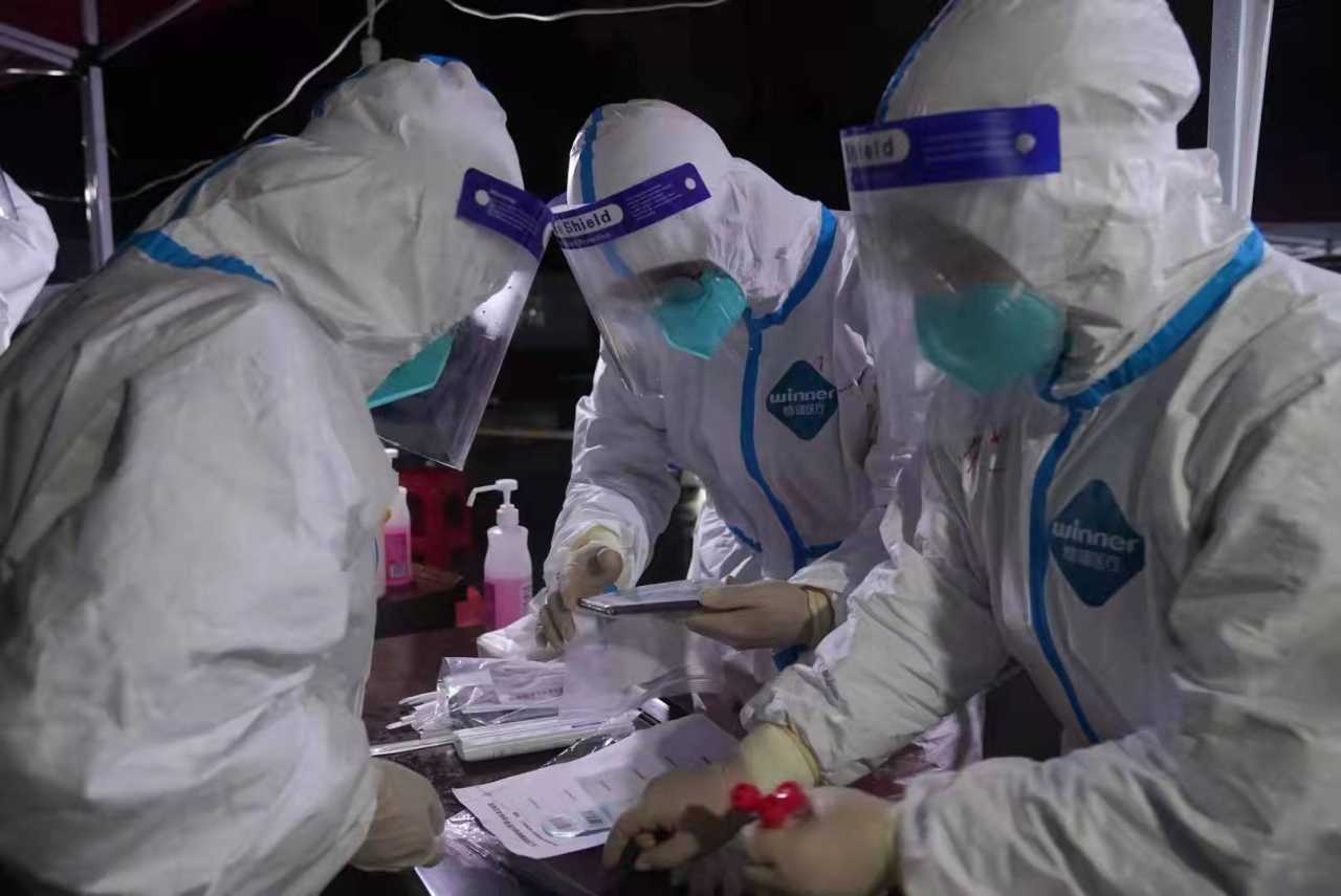 “这些医护人员太辛苦了,这么长时间不吃不喝,工作强度还这么大,真是令人敬佩。我们一家积极响应政府号召,社区一通知就过来了。”刚做完核酸检测的王先生对记者说。
