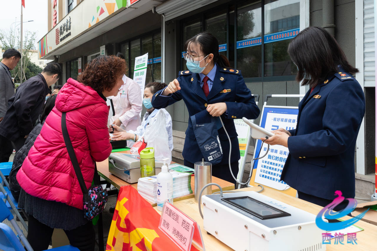 市市场监督管理局党员志愿服务队女党员在八一社区开展血压计检定服务,为社区的女性居民们送上节日的问候。(通讯员 占媛)
