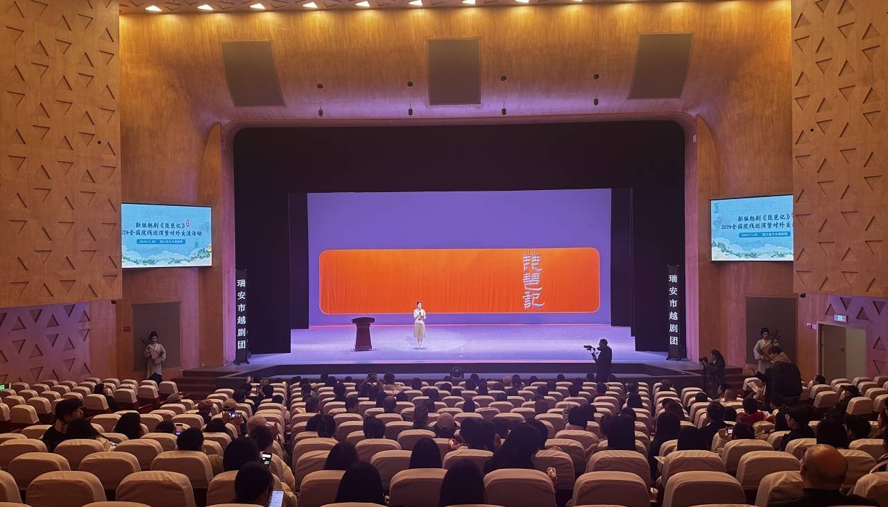11月20日晚,新版越剧《琵琶记》2024全国院线巡演暨对外交流活动在四川省大木偶剧院举行。此次活动标志着新版越剧《琵琶记》今年第二轮全国巡演启航,也促进了瑞安与南充两地文化的深入交流与融合。