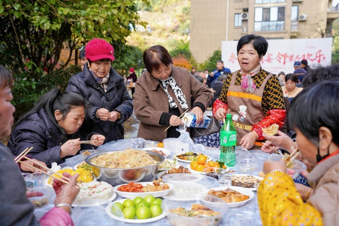 12月20日,瓯南街道石郭社区新时代文明实践站开展“冬至团圆宴 邻里共欢乐”活动。