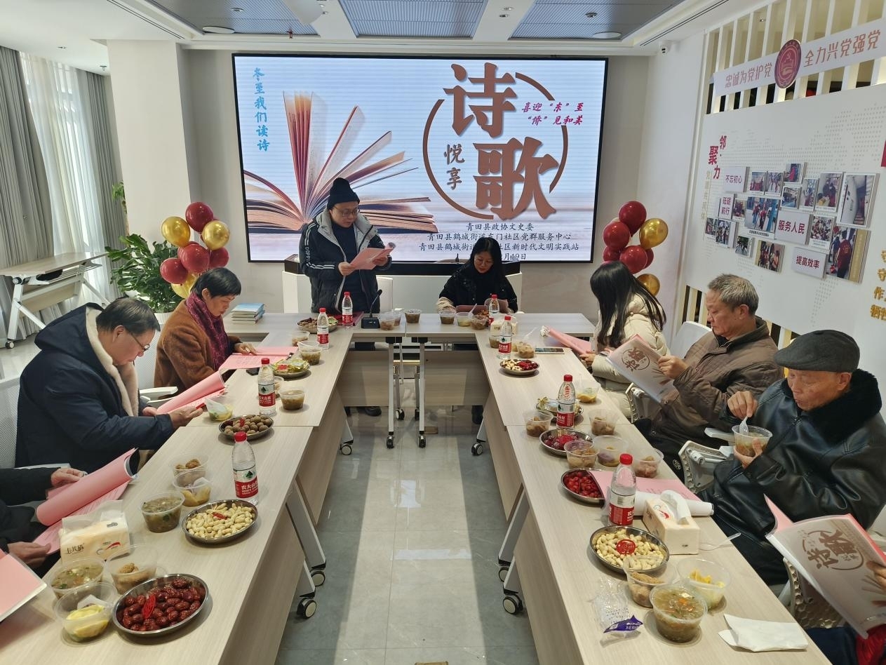 12月19日,鹤城街道东门社区新时代文明实践站开展悦享诗歌文明实践活动。