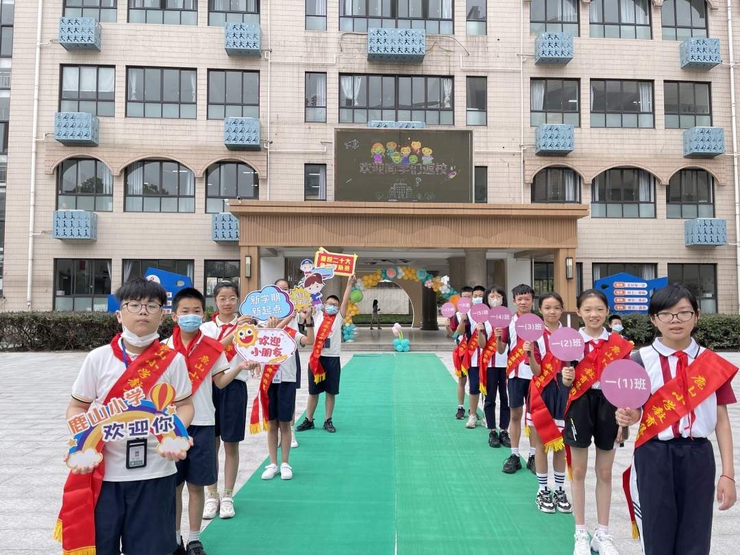 九月的阳光,挥洒金色,铺展希望。鹿山小学教育集团315名一年级的小萌新们背着书包,迈着轻盈的步伐,来到了期待已久的校园。老师们早早地就来到校门口,等待着孩子们的到来!在六年级志愿者的引领下,走过“启智门”,踏上“琢玉路”。