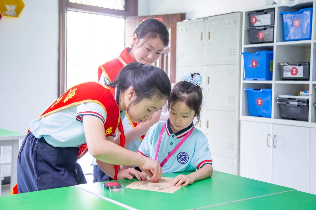 爱德小学举行了以“喜迎二十大,微笑启新程”为主题的一年级新生校园打卡活动。校门口校长们微笑相迎,六年级大哥哥大姐姐亲切引领,精致的手绘学校地图打卡明信片,别具特色的教室环境布置,老师们为孩子用心准备的礼物和美好祝福,让一年级新生们感受到了新校园的温馨与美丽,让他们在第一天就深深地喜爱上了学校。