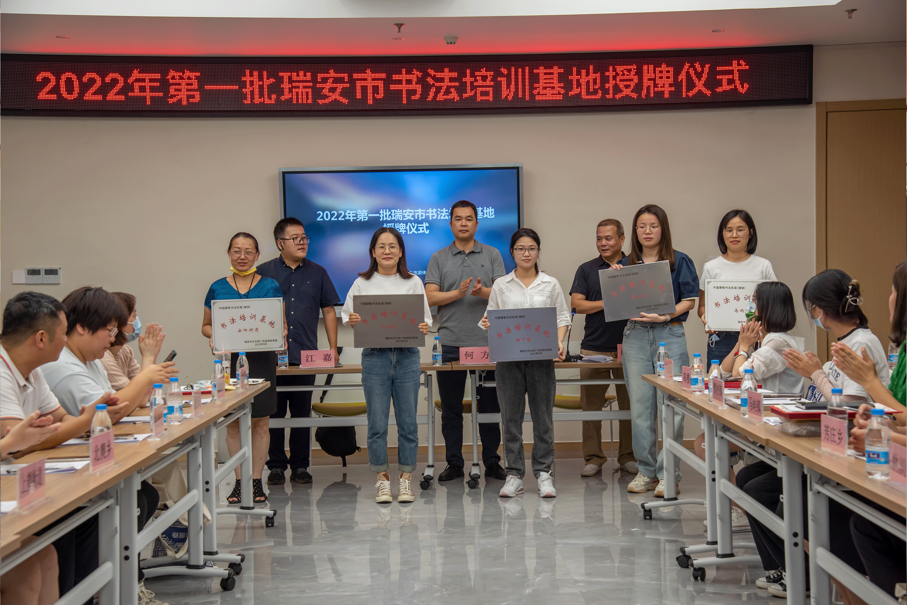 9月23日,由瑞安市文化和广电旅游体育局举办的2022年首批瑞安市书法培训基地授牌仪式在马屿镇文化中心会议室举行,共为全市各地13个首批书法培训基地授牌。