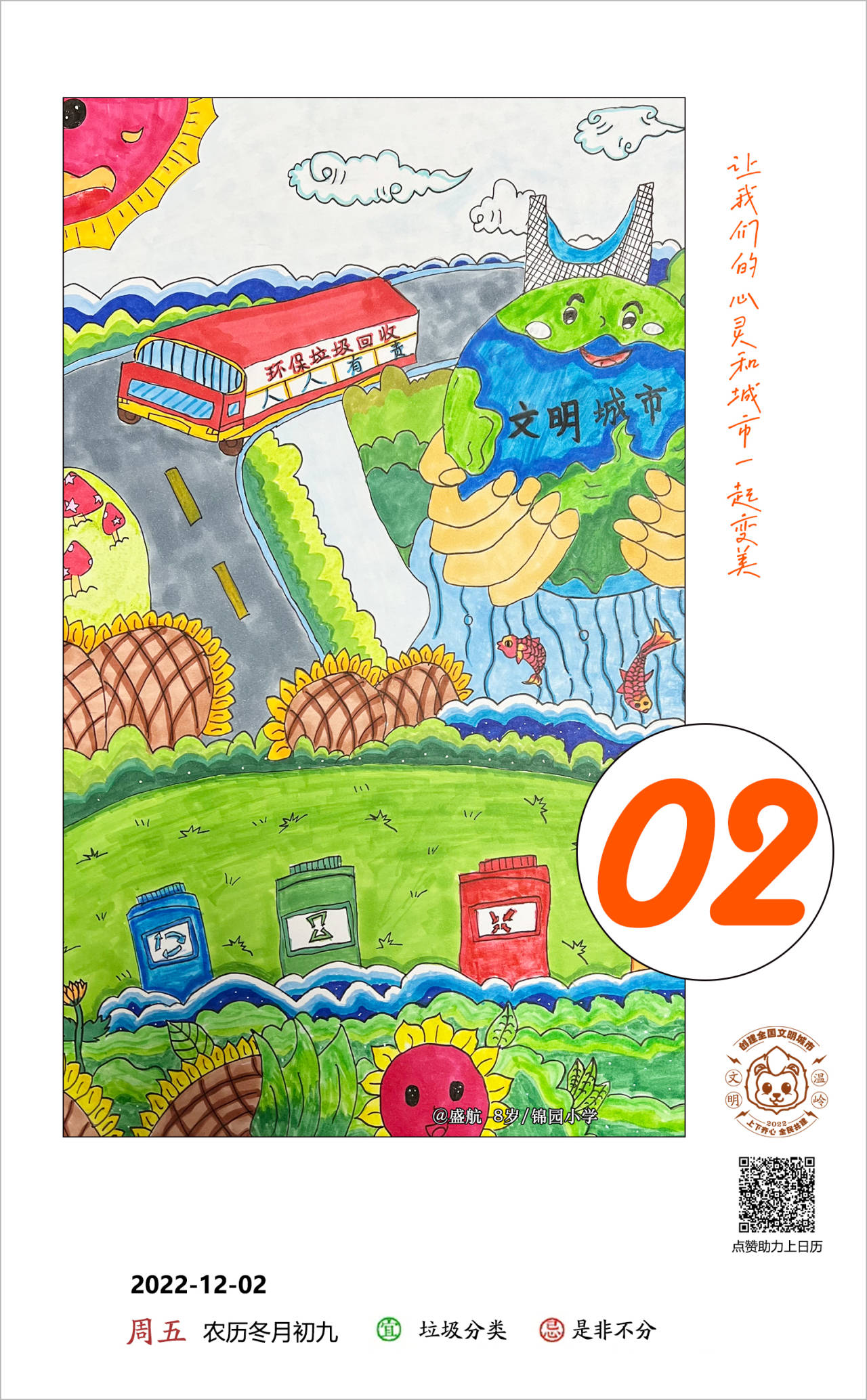 人人共建,天天美丽。【文明日历】向您征集绘画、书法作品。奖励办法:学生组30元/张,周点赞过400,双倍奖励。另征集每日文明城市创建励志小短句,录用奖励10元/条。
