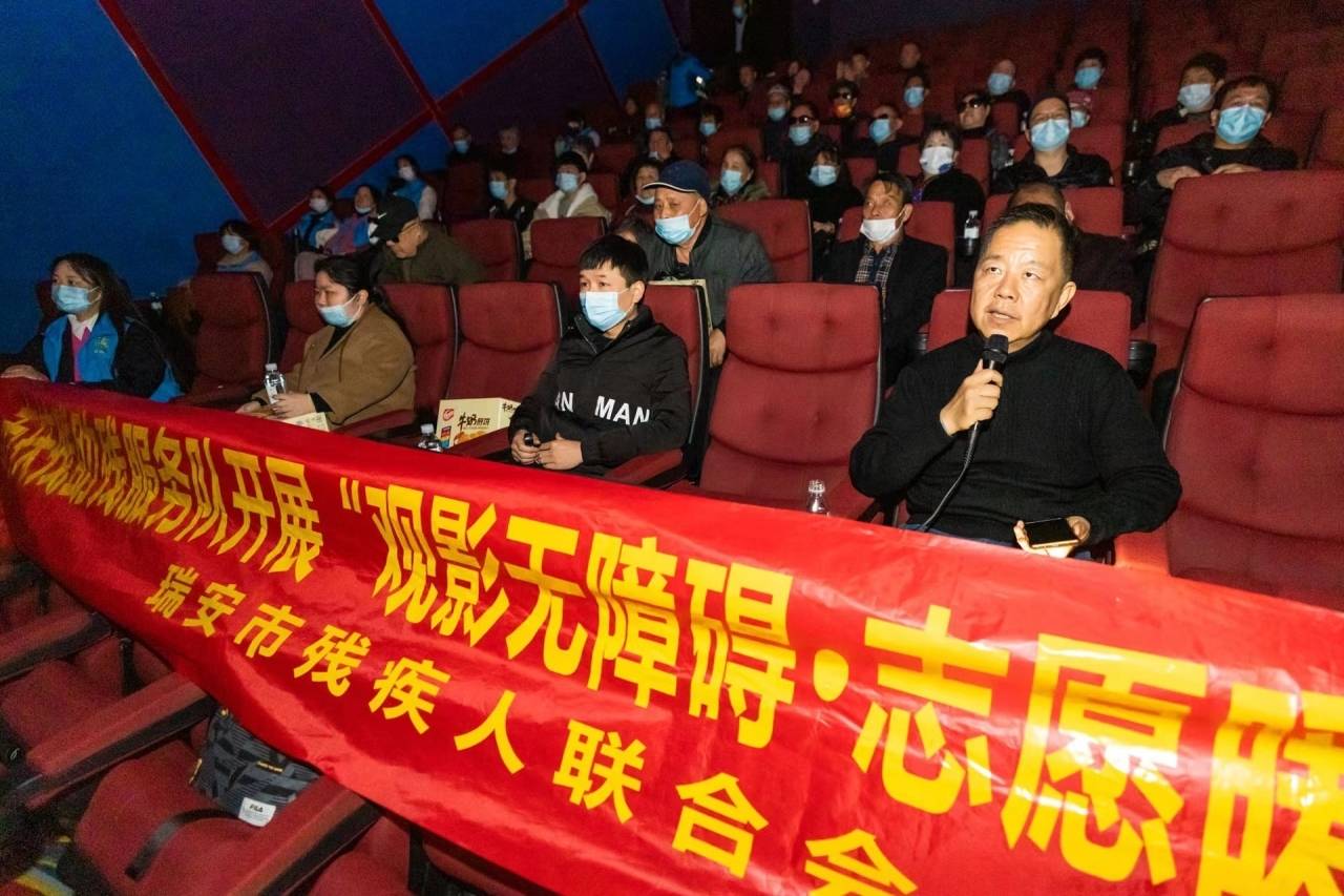 12月7日下午,瑞安电影城6号厅里,迎来了一群特殊的观影者,60多位视障人士和他们的家属排队检票入场,“观看”爱国主义影片《万里归途》。这是由瑞安市残联委托瑞安市扶残助残志愿大队开展的“观影无障碍 志愿暖人心”活动。