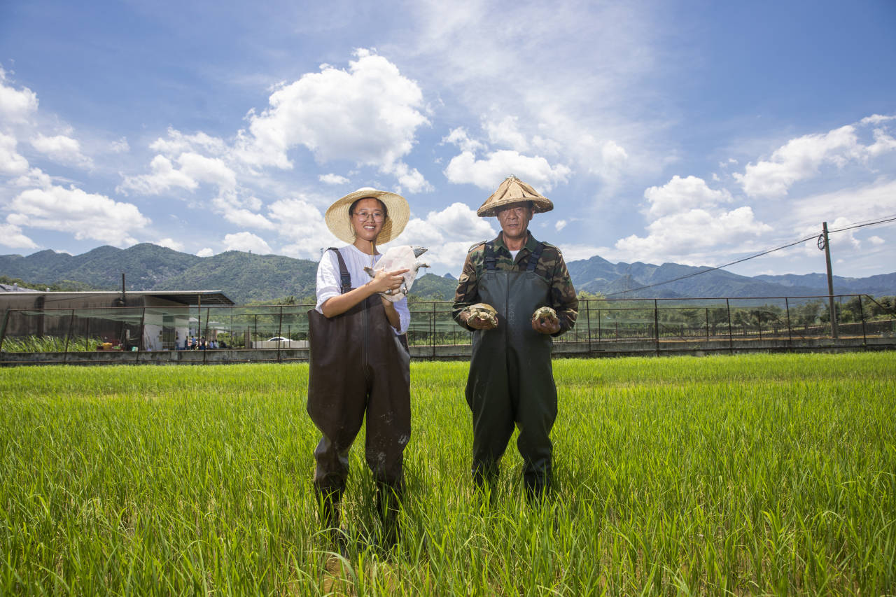 傅星如,1991年生,在衢江区大洲镇狮子山村的一片稻田里,傅星如(左)与父亲傅孔明一起在稻田里放下新一轮的鳖苗。傅星如毕业于中国美术学院,毕业后她回到故乡,和父亲联手经营农场,致力于“稻鳖共生”,成为当地知名的“90后女农场主”。她还把自己的专业与鳖壳结合,在壳上作画,做出文化产品,让产品多元化。她说:“我喜欢这片土地,我的梦想就是要打造一个漂亮的生态农场,分享农业和艺术,走自己的品牌之路。”