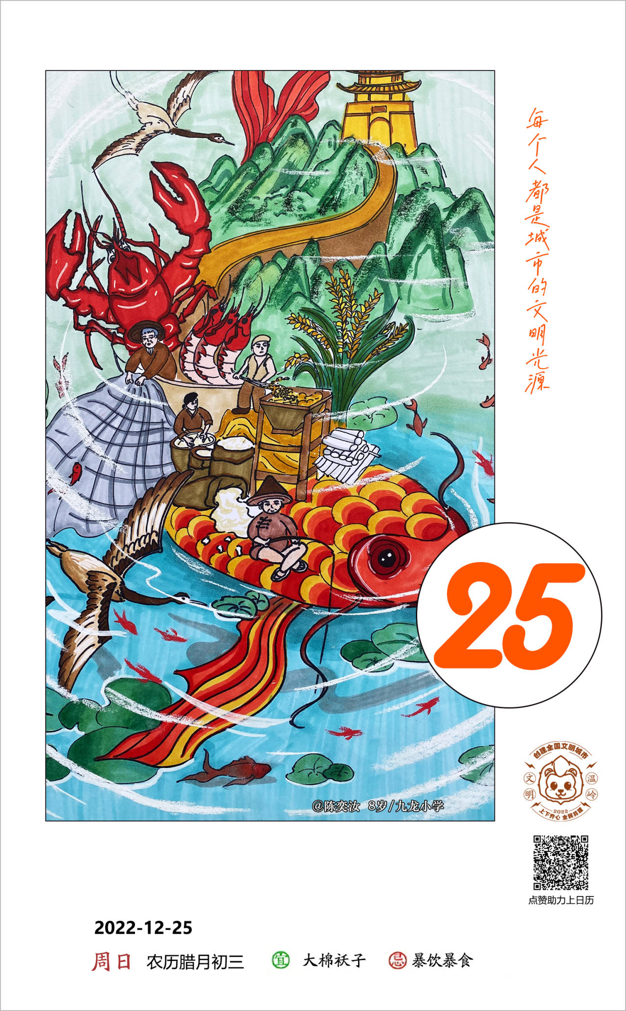人人共建,天天美丽。【文明日历】向您征集绘画、书法作品。奖励办法:学生组30元/张,周点赞过400,双倍奖励。另征集每日文明城市创建励志小短句,录用奖励10元/条。