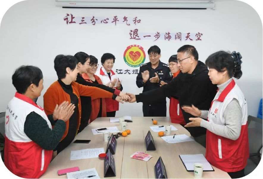 成立于2011年的“江大姐”调解工作室,集中资源优势,精准发力,设立“1+1+N”工作机制,即江新社区党群服务中心设立一个“江大姐”调解室本部、每天安排一名“江大姐”坐班服务、设立N个“江大姐”调解服务办公室的模式开展工作,提供从“走进来”到“走下去”的拓展式服务。工作室成立五年来,已累计调处各类矛盾纠纷557起,调处成功率98%以上。