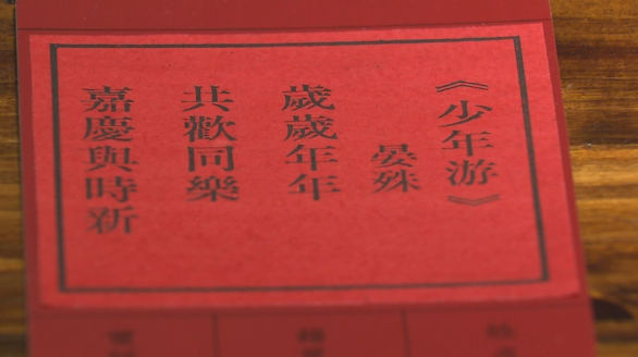 走进中国木活字印刷研学馆,院子里搭起了戏台,唱起了大戏。两位越剧演员正演绎着《红楼梦》经典选段《天上掉下个林妹妹》,吸引市民驻足听戏。戏台两侧则支起摊子,吃饺子、喝屠苏酒、写福字,大院里年味儿十足。吃饱喝足后,市民们涌入馆内,体验木活字印刷术的魅力。在传承人的带领下,市民们将红纸平铺在刻有诗词的雕版上,用刷子来回刷按。不一会儿,一张张印有“岁岁年年,同欢共乐”“愿新春已后,吉吉利利,百事都如意”等祝福诗词的印刷品就完成了。随后,大家将印刷好的红纸贴在“名刺”上,邮寄给自己的亲朋好友,这就是宋代流行的“飞帖拜年”。“小朋友们的感觉非常好,宋韵文化他们体会得很深刻,包括一直在那边跟着师傅一起做印刷,我觉得这对于中国文化和当地文化的推广特别好。”市民谢丹丹说道。