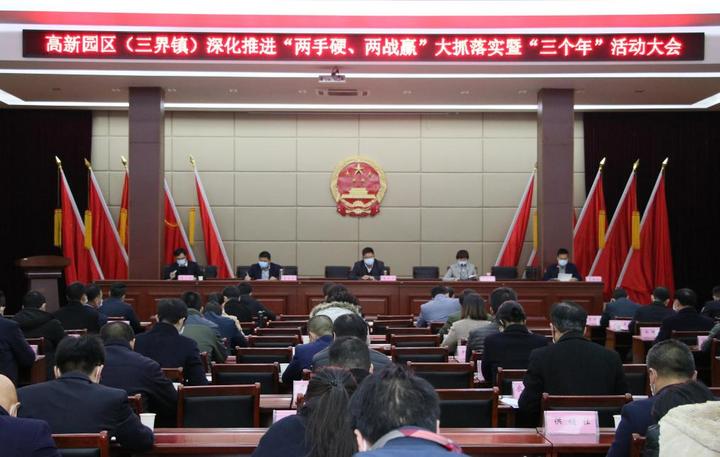 为进一步动员全镇广大干部群众全力以赴防疫情、统筹兼顾促发展,今天上午,高新园区(三界镇)召开深化推进“两手硬、两战赢”大抓落实暨“三个年”活动大会。