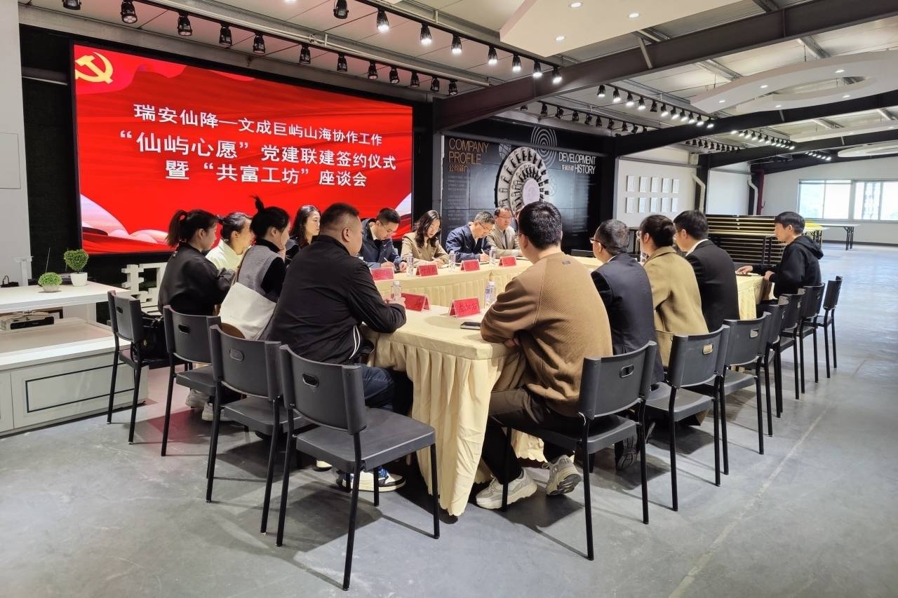 这一次,以党建为媒,仙降和文成巨屿除了山海协作“走亲”外,还积极探寻“党建联建+政府协作+企业合作”的深度发展。座谈会现场,双方签订了“仙屿心愿”党建联建协议,旨在充分发挥党建统领作用和基层党组织战斗堡垒作用,以党建联建凝聚双方力量,增强仙降街道、巨屿镇“仙屿心愿”党建联建实质化作用,有效推进“仙屿心愿·共富工坊”建设培育工作,实现党的建设与企业发展良性互动,达到“推动发展、服务群众、凝聚人心、促进共富”的美好愿景。