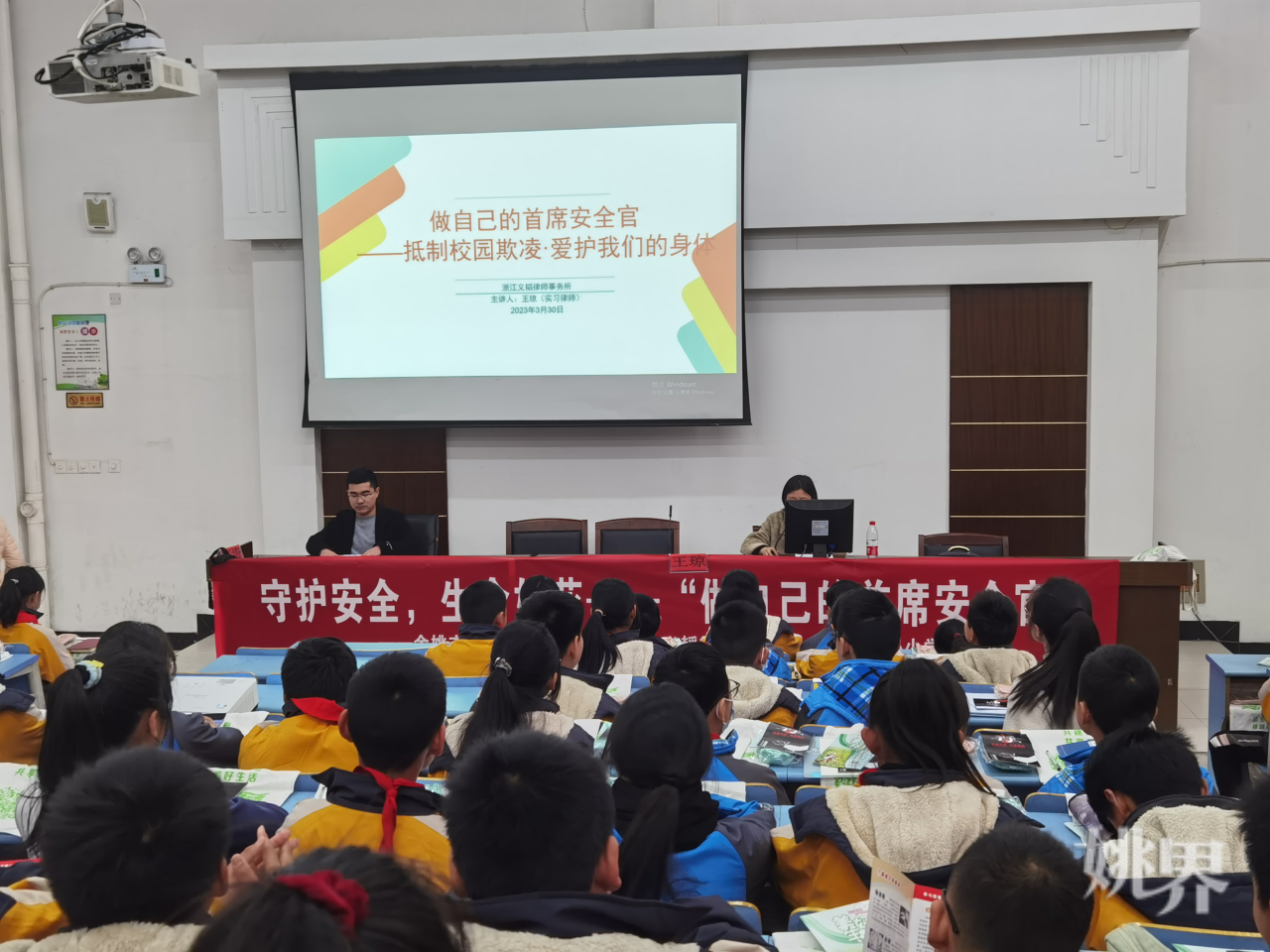 为提高学生的法律意识,增强学生的法治观念,让学生学会用法律武器保护自己。3月30日下午,牟山司法所邀请到了浙江义韬律师事务所王琼律师在牟山镇小为全体六年级学生开展“做自己的首席安全官-抵制校园欺凌·爱护我们的身体”专题法治讲座。