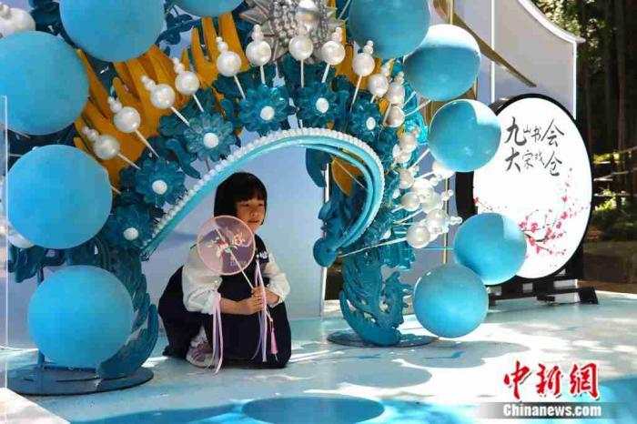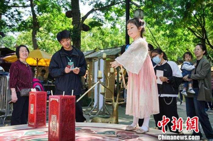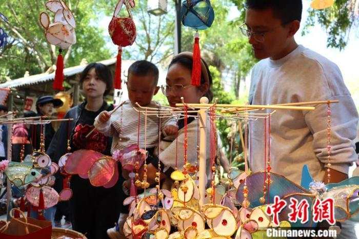 中新社温州电 (周健)戏曲生活市集“九山书会·大宋戏仓”5月1日在浙江温州的九山书会开幕,其以“戏曲+”的形式,融合非遗手工、美食游乐等多元化、年轻化元素,展现中国戏曲文化,吸引众多民众前来游玩。