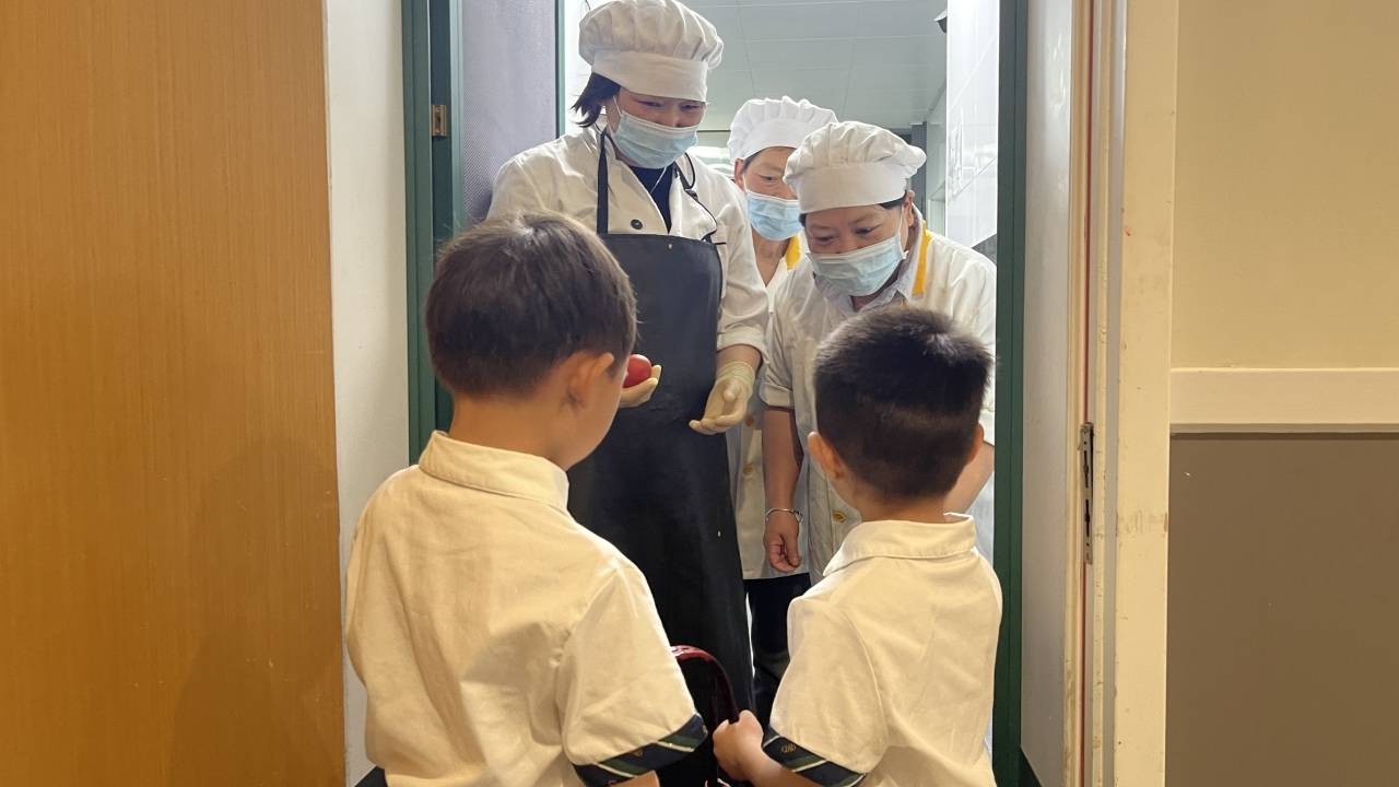 “园长妈妈,今天是幼儿园的生日,我们过来给您送红蛋!”孩子们激动地说。保安叔叔、医生阿姨、食堂阿姨、老师们、幼儿们……他们一个也不“放过”,都送上了一颗颗寓意着生活红红火火的红蛋。