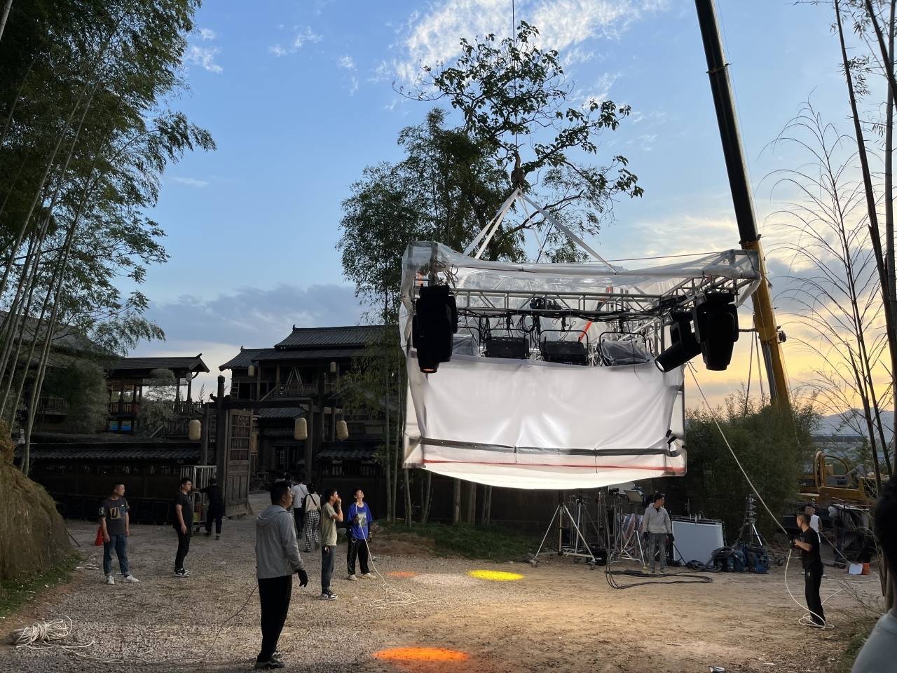场地管理负责人金熙介绍道,为了提供更丰富的拍摄场景,满足剧组拍摄需要,4月初,官桥村开始对小竹林外景基地做改扩建建设,在原有建筑基础上增加了一处厢房和庭院场景。在“五一”期间也不停工的加紧建设下,拍摄基地现已基本完成改扩建工作,正处于最后的扫尾阶段,剧组也开始同步进场做布景拍摄。