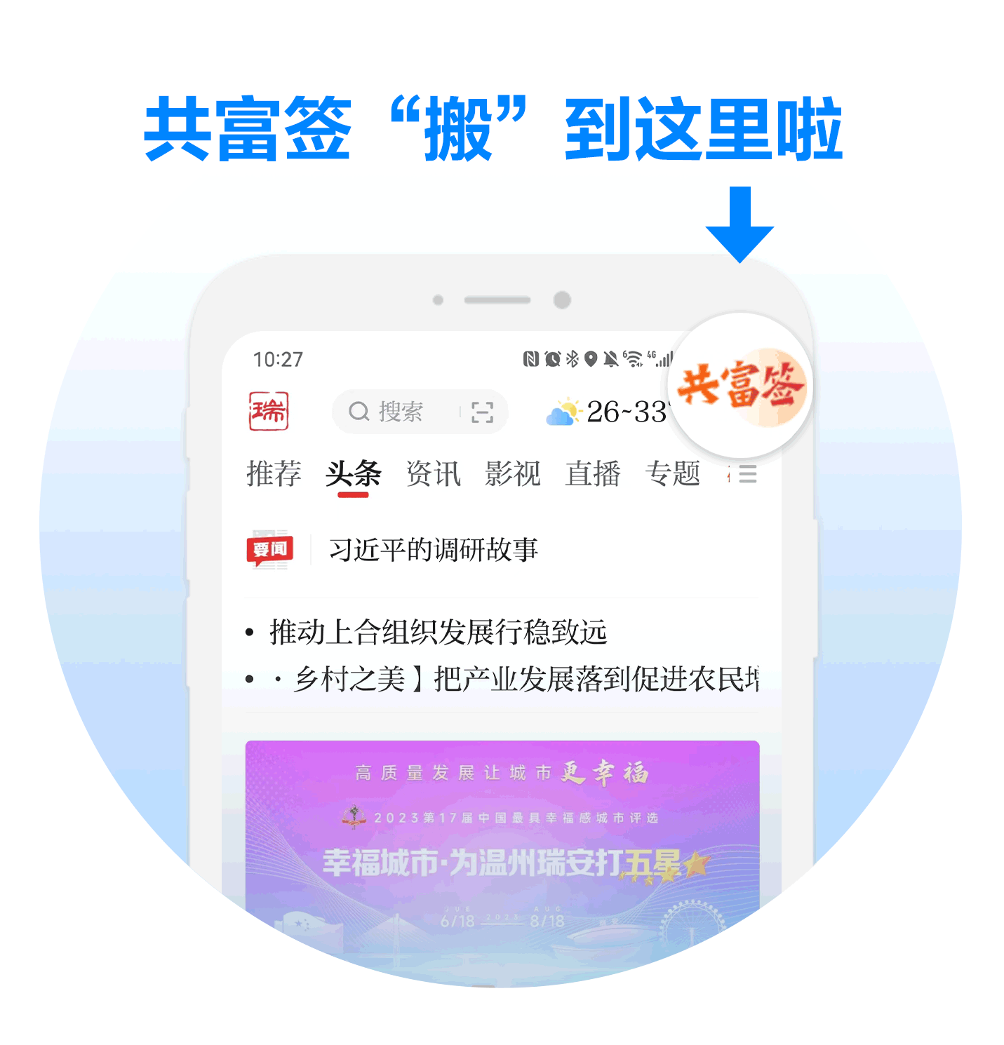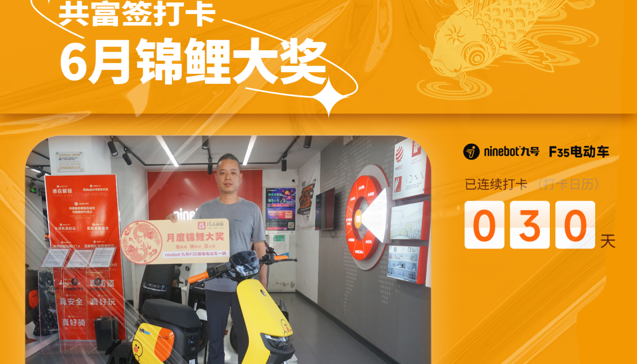 每日在“共富签”签到打卡,不仅可以领现金红包,还有机会抽取月度锦鲤大奖电动车一辆。