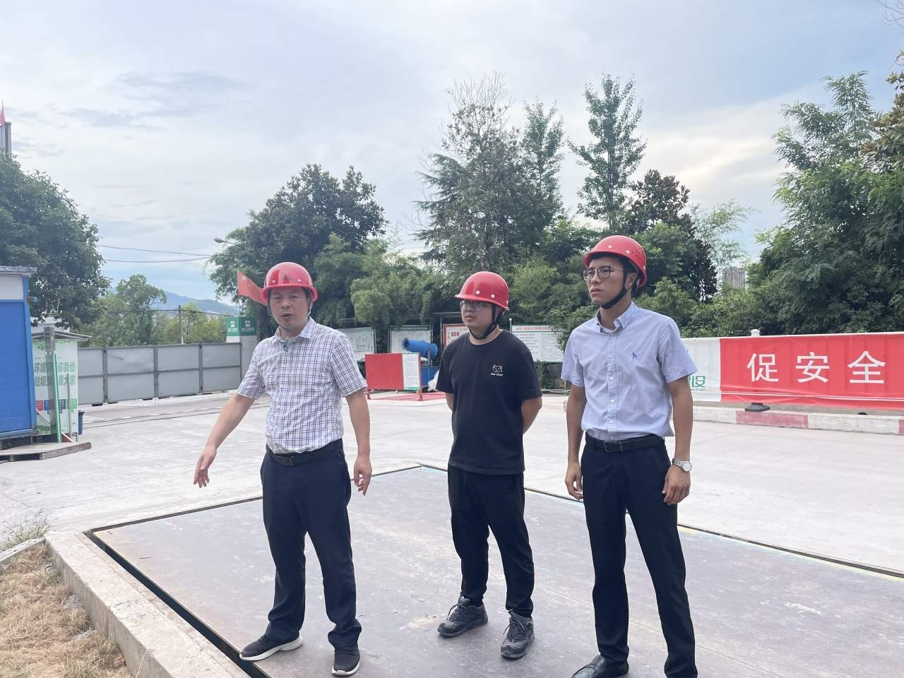 7月18日,产发集团副总经理蒋晶祥带队至南马镇,与镇政府就项目建设问题进行对接,并至木雕家具产业园一期项目进行安全检查。