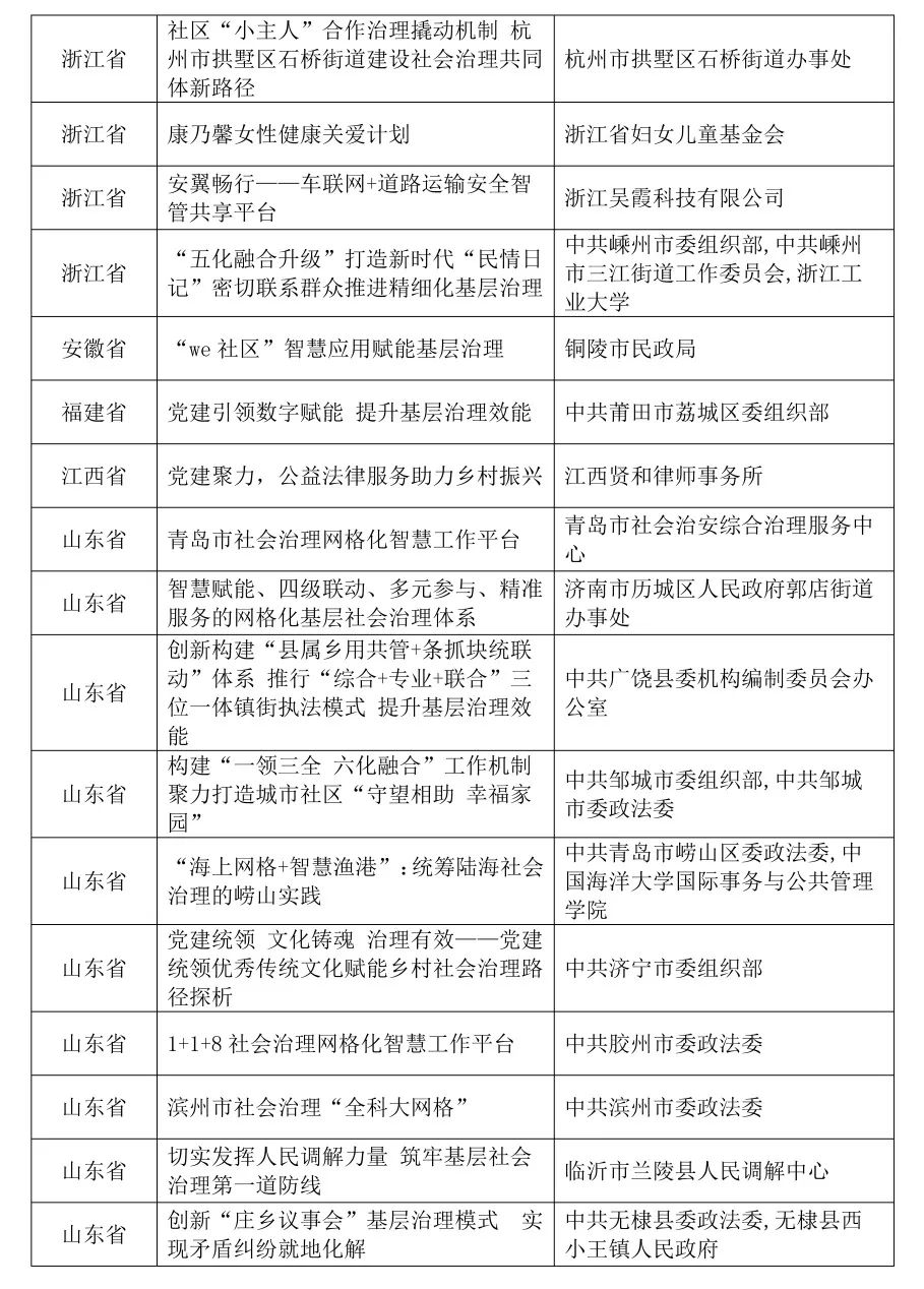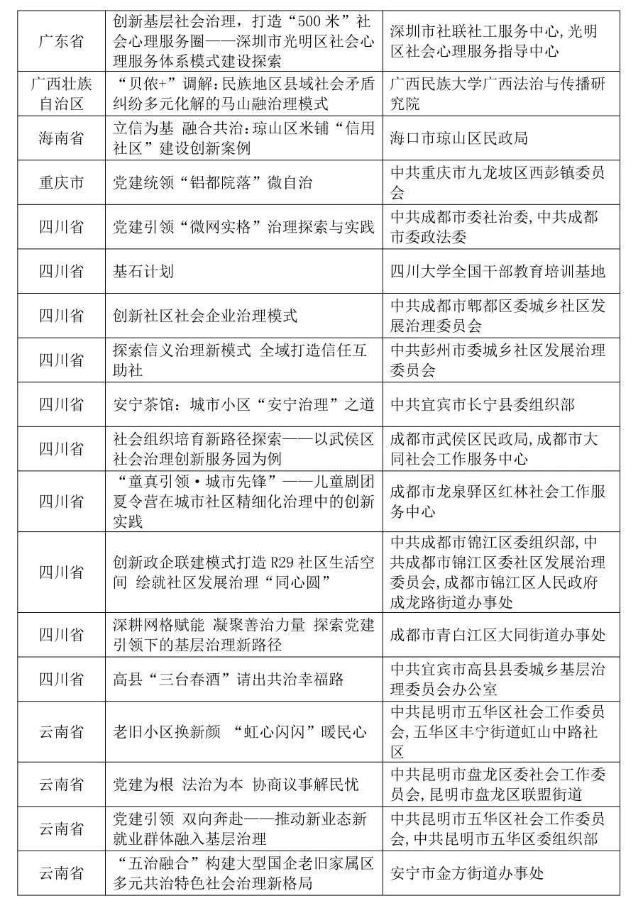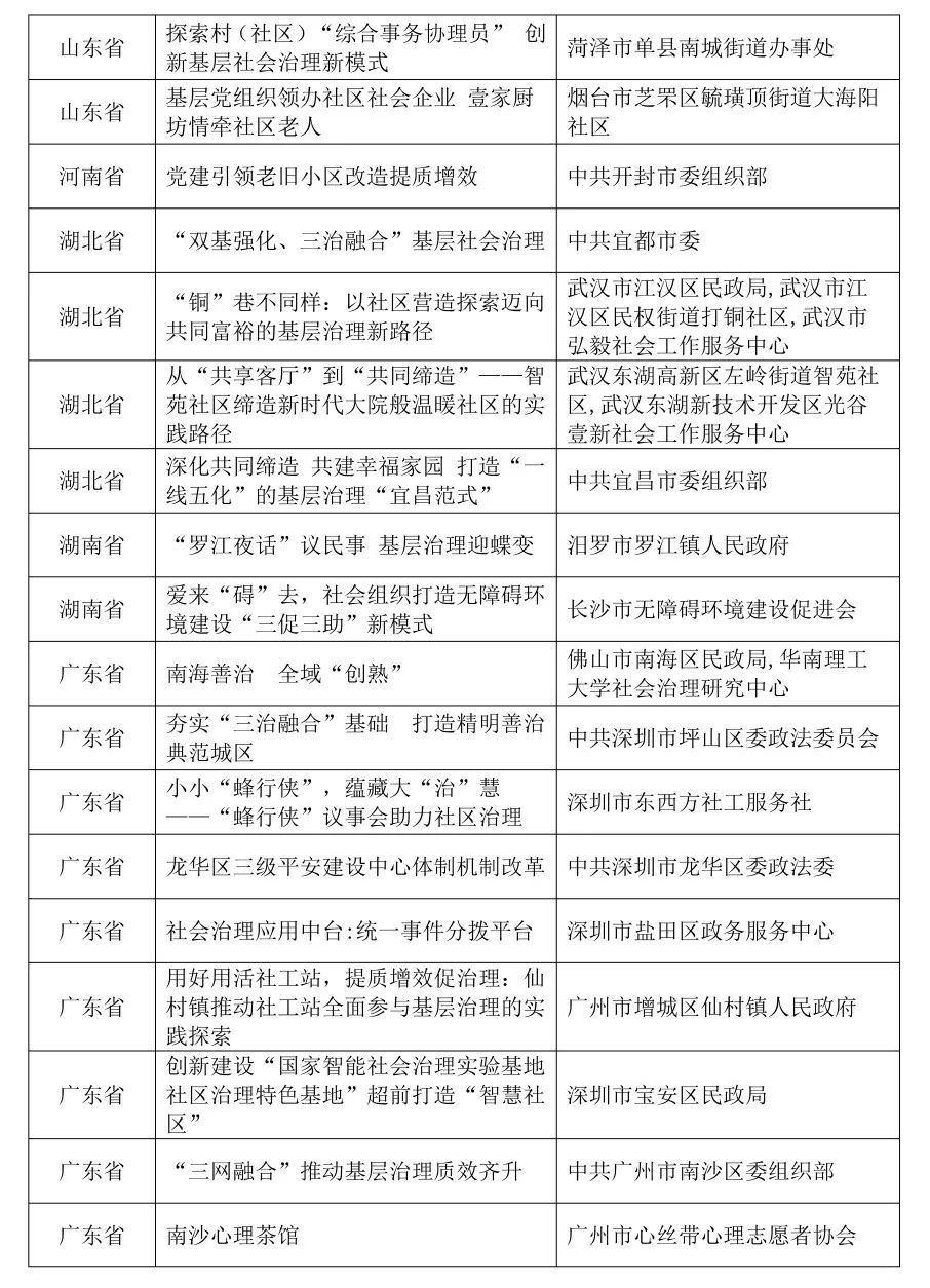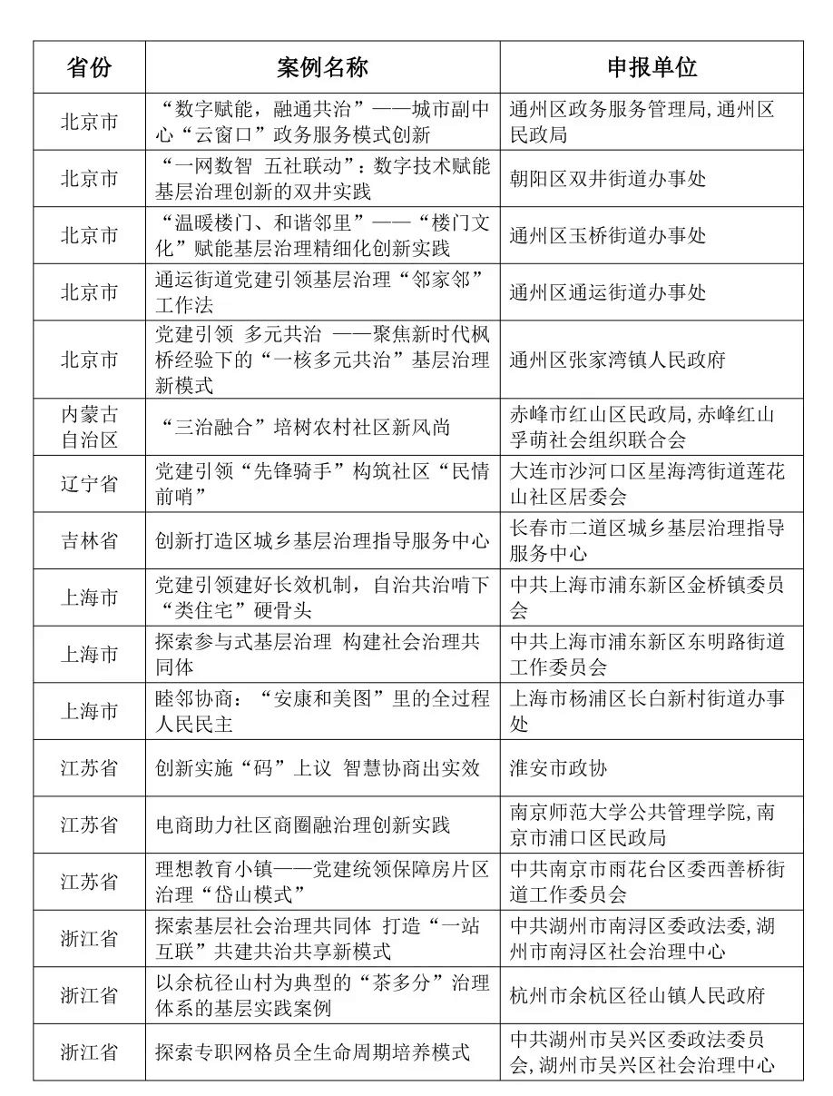 本着公开、公平、公正原则,活动组织方研究制定了严谨科学的评审规则,并组织国内社会治理领域专家学者开展评审。经过分类汇总、材料审核、通讯评审、专家会审等环节,共遴选出100份案例入选“全国社会治理创新案例(2023)”。现将入选名单公示如下。