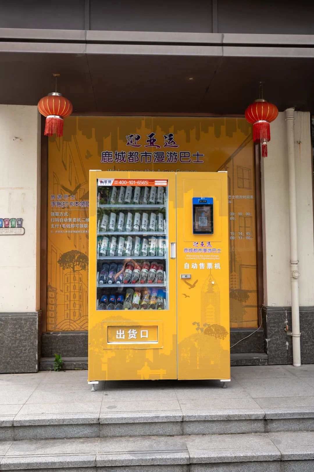 都市漫游巴士集章手账本在名医馆门口的自助售货机里,点击操作屏刷脸支付就可以获取,相当方便!