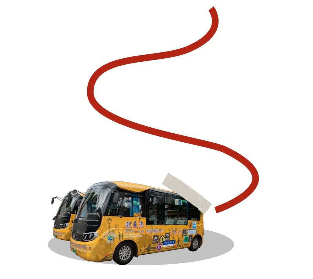 小小的巴士被涂装成亮眼的黄色,载着游客在古城里穿梭,为了游客的观光体验,巴士的行驶速度会相对慢一点。