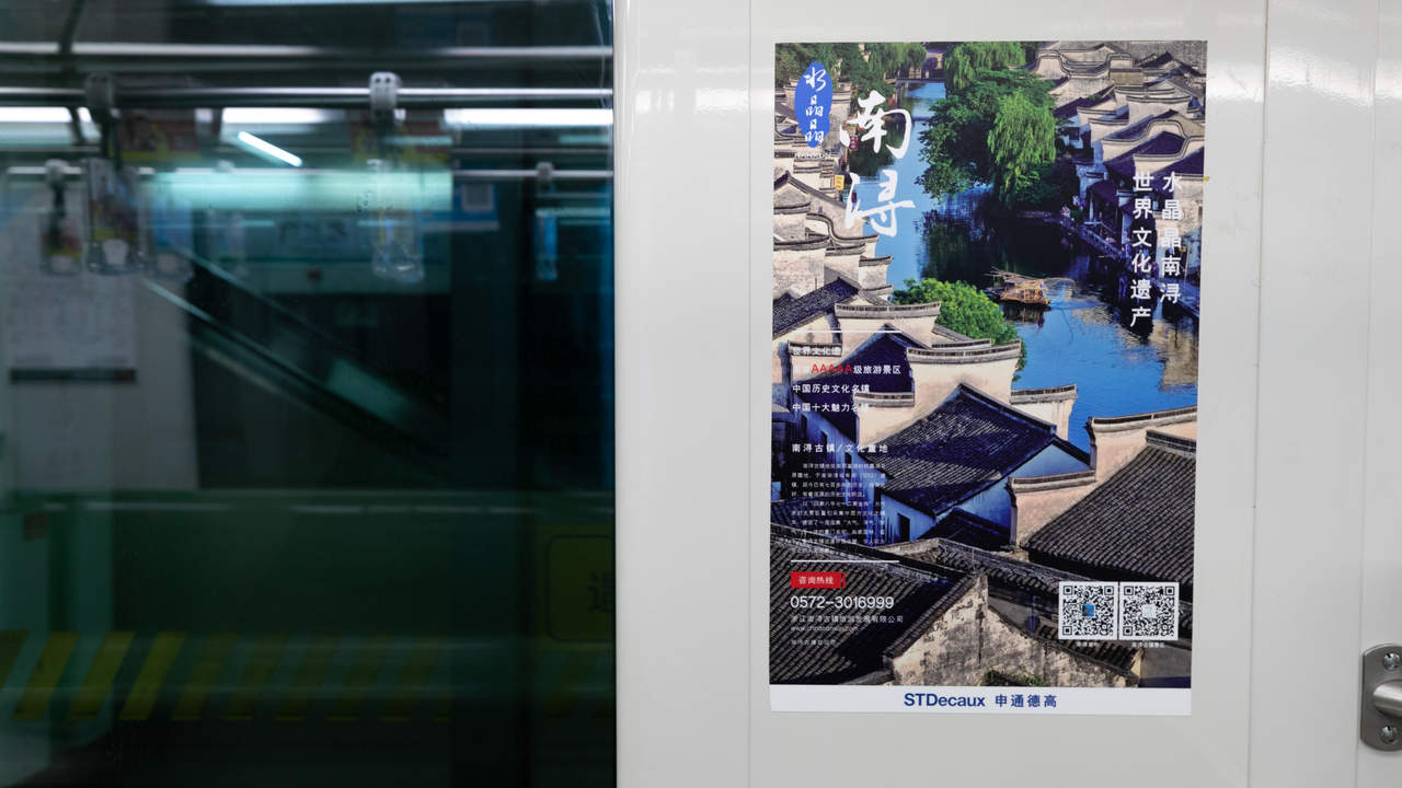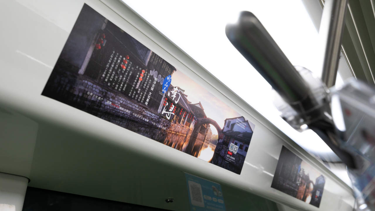 “水晶晶南浔,世界文化遗产!”今晚,上海的地铁2号线车厢内出现了一抹水乡亮色。“水晶晶南浔”五个字跃然于南浔古镇的秀丽景色之上,吸引了不少乘客的目光。