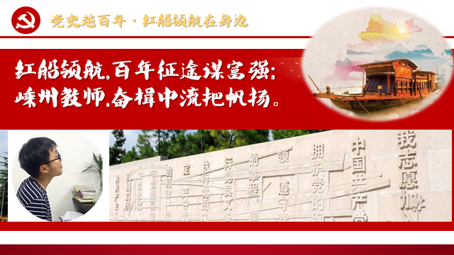 忆往昔,红船领航,百年征途谋富强;看今朝,嵊州教师,奋楫中流把帆扬。我们是共产党员,我们也是嵊州教师。
