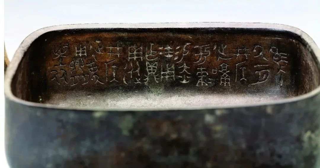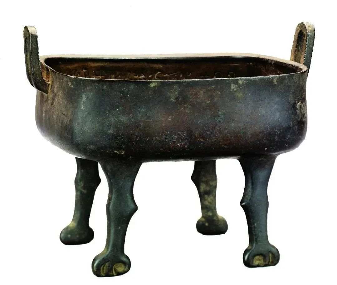 该鼎呈圆角方形,直口浅腹,附耳,底近平,下有四条兽腿形足。通体光素。内壁铸铭文13行29 字,其中重文、合文各一,“麦”为人名。铭文大意为:麦因辅佐邢侯,得到邢侯赏赐的赤铜,用之做鼎,供日后随邢侯征行时使用,并用以宴飨诸友。