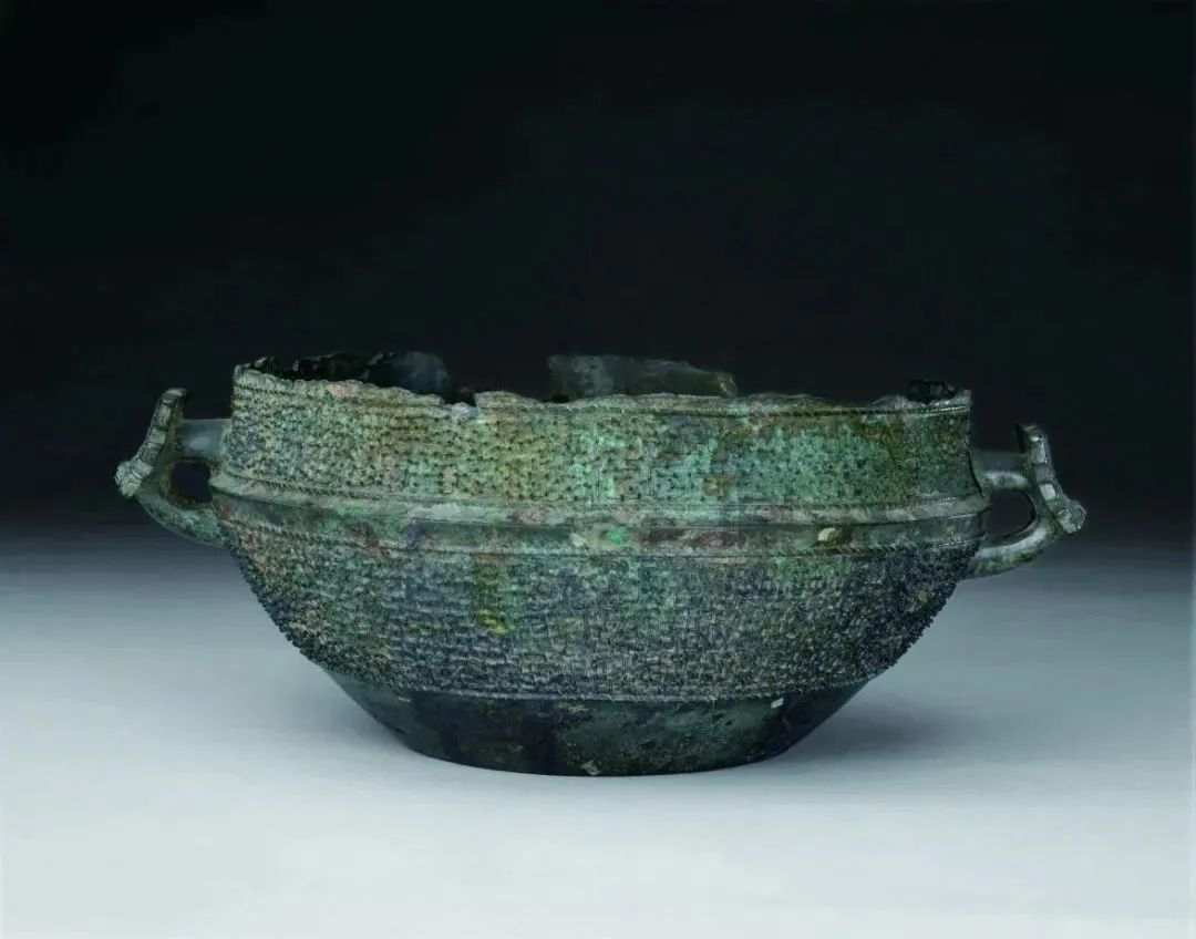 娄君盂通高12.8厘米,宽33.2厘米,重2.28千克,口沿已残。此盂敛颈,折肩,腹圜收,平底,肩上有二兽耳。颈、腹部以两周绹纹作界栏饰于主纹上下。主纹为蟠虺纹和棘刺纹,具有浓厚的地方特色。器内底有铭文6行26字,大意是:在正月的第一个吉日,娄国国君自做盛食之盂,用来祈求长寿无疆,子孙后代宝用此器。