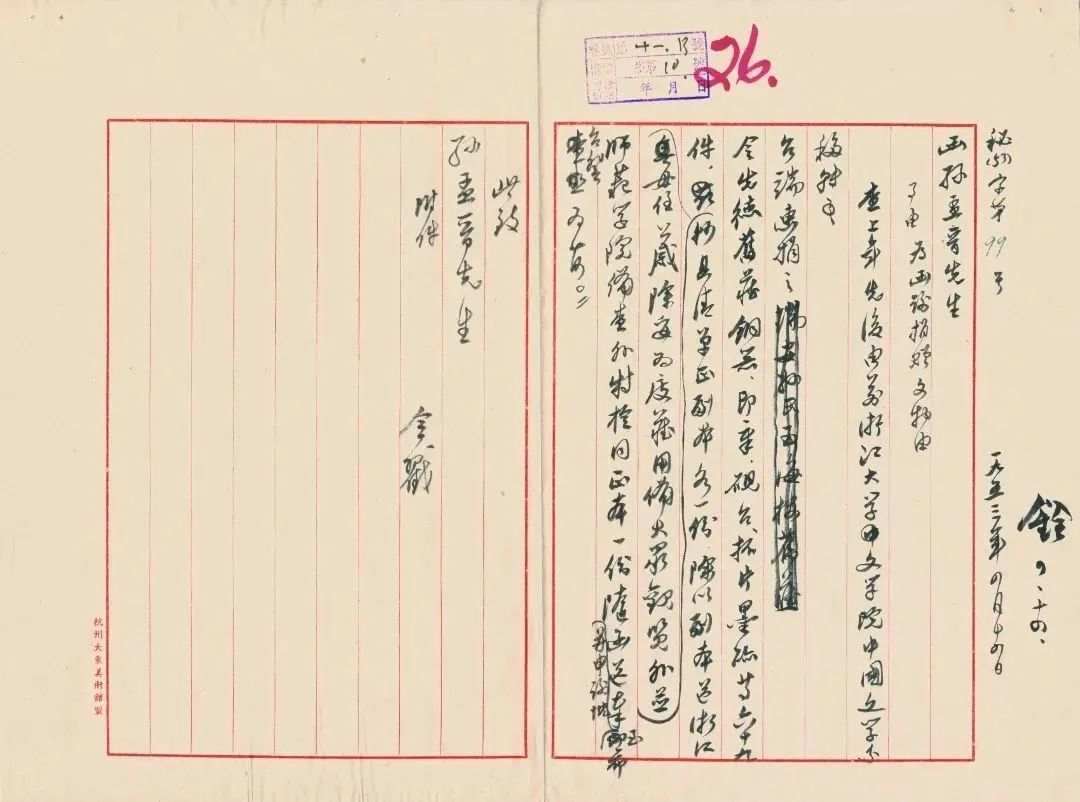 1953年4月浙江省文物管理委员会关于接收捐赠文物致孙延钊先生的信件草稿