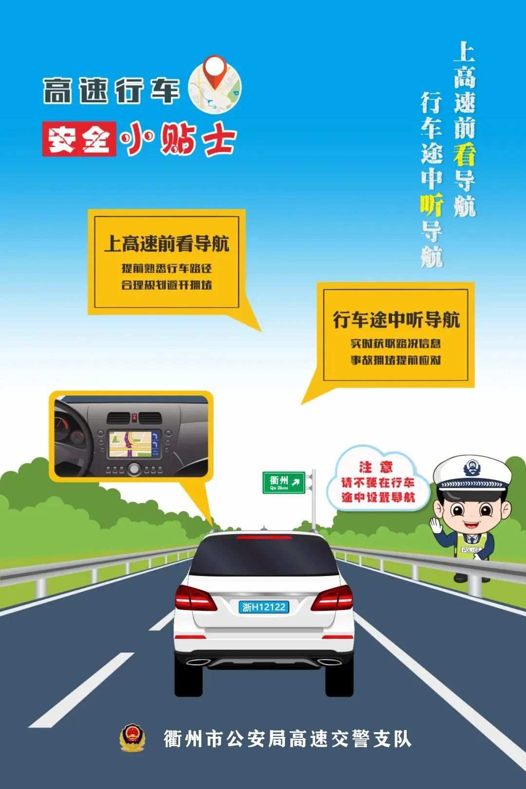 出行前,请提前规划好行车路线并设置好导航,高速交警会在高德地图和百度地图等手机导航上进行同步指引。
