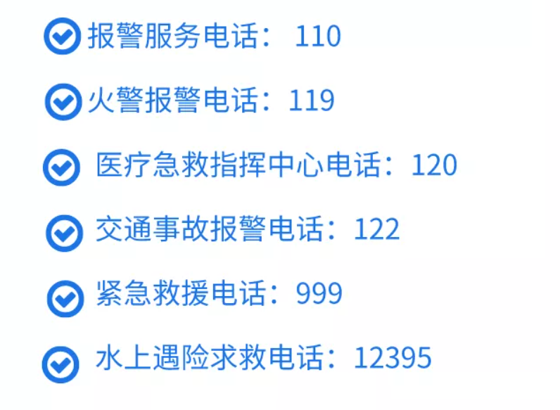 常用应急电话