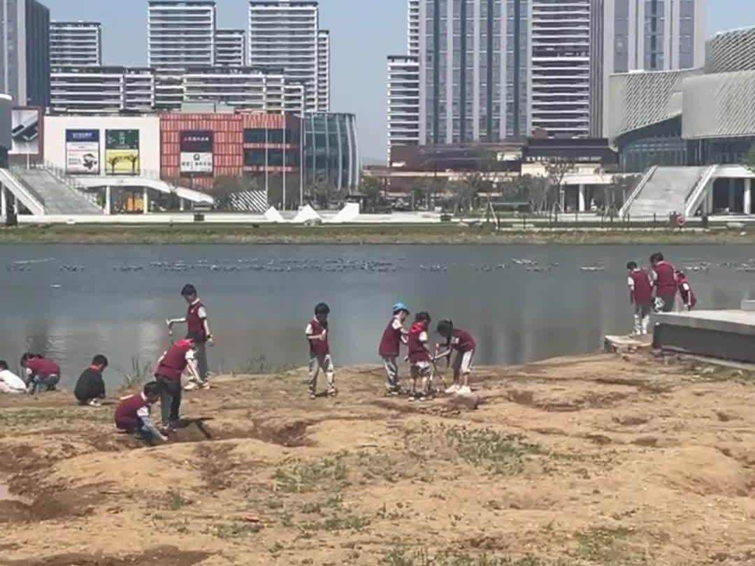 在五泄江公园,偶遇小学生春游……