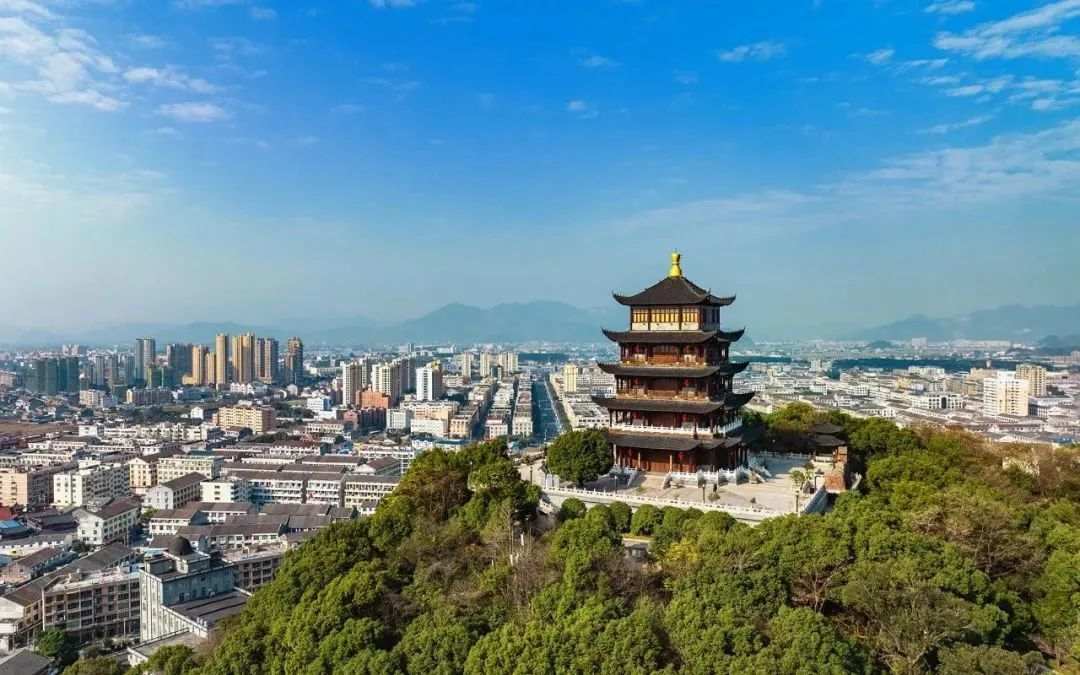 桔坡山位于萧江镇境内,与老城区相毗邻,集文化体育健身设施、古建筑和文保单位为一体。山中有一亭一庙一古墓,一楼二寺一太极广场。山顶伫立着檐角飞翘、雕龙画栋的鼓楼,里面陈设着萧江大鼓,鼓面上绘着双龙戏珠的图案,下方写着“大鼓雷音 永葆太平”八字,有“中国第一大鼓”之称。