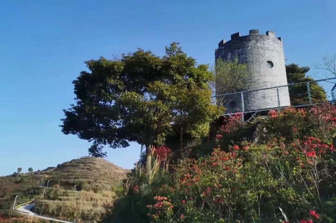 蔡家山古堡, 此堡原建于东汉建武年间(约公元50年前后),相传是东汉忠臣良将姚刚带兵在此立寨。后毁于兵火。蔡家山不仅拥有汉朝古寨,烽火台等历史文化资源,自然资源是相当丰富,高山水稻、番薯、茶叶非常出名。
