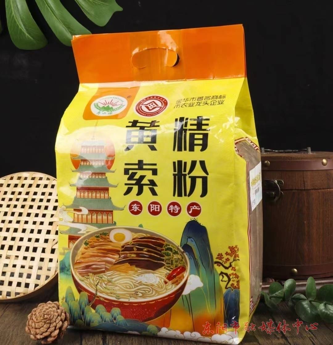 东阳索粉是金华市非物质文化遗产传承项目,相传明代初期由东阳民间传奇人物“马坦”始创,具有细如丝、韧性好、久煮不糊等特点,历经千年文化百年传承,是招待客人及走亲访友的必选礼品。与普通索粉不一样,市厚山源食品有限公司生产的黄精索粉药食同源,依托磐安药材市场中药材加工技艺的便利条件,创造性地将中医药文化融入东阳粉干中,这种独特的粉干吃起来爽滑可口,深受消费者青睐,产品畅销国内外,是送礼佳品。